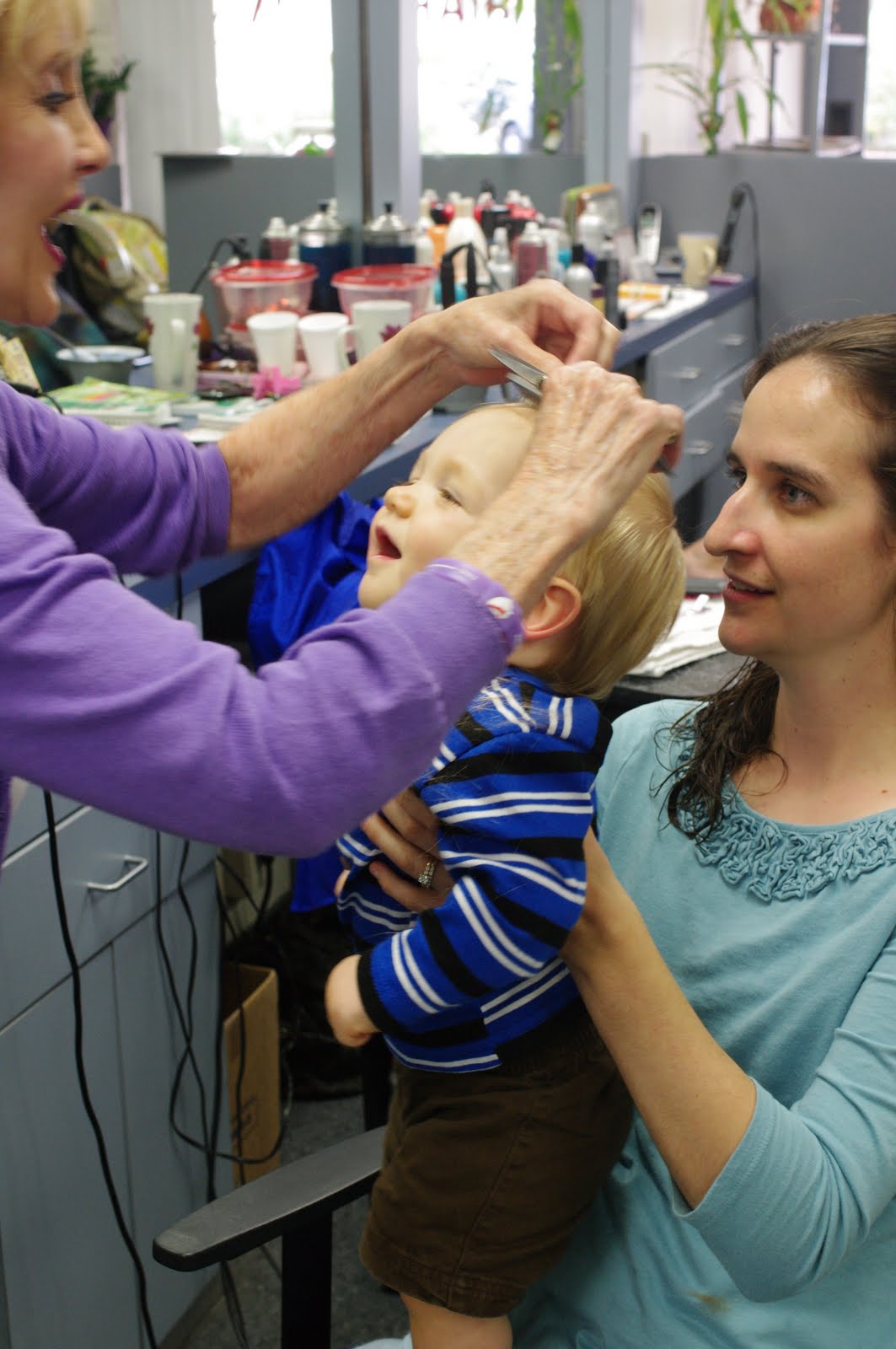 We decided it was time for a haircut mainly because complete strangers keep saying "what a cute little girl you have." So people are either stupid, or our kiddo needed a haircut, or a little of both.